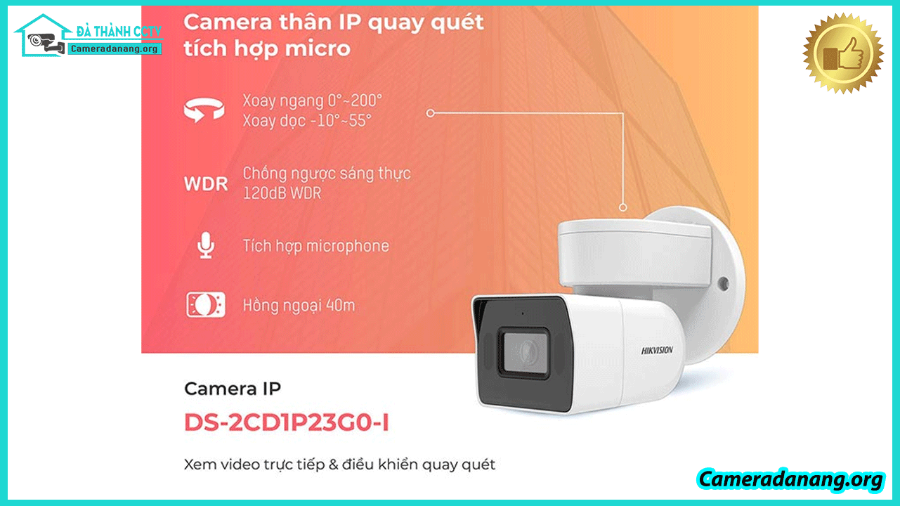 Nhu cầu sử dụng Lắp đặt camera Đà Nẵng để giám sát an ninh của khách hàng tại Đà Nẵng hiện nay ngày càng được nâng cao. Vì vậy sự ra đời của hàng loại thương hiệu cũng ra đời. Thương hiệu camera Hikvision cũng là một trong những thương hiệu lớn tự hào thiết kế nên nhiều dòng camera phục vụ tốt nhu cầu sử dụng của khách hàng. Hôm nay cùng ĐÀ THÀNH CCTV tìm hiểu về một mẫu Camera IP Hikvision quay quét ngoài trời DS-2CD1P23G0-I đang được khách hàng cực kỳ ưa chuộng hiện nay.