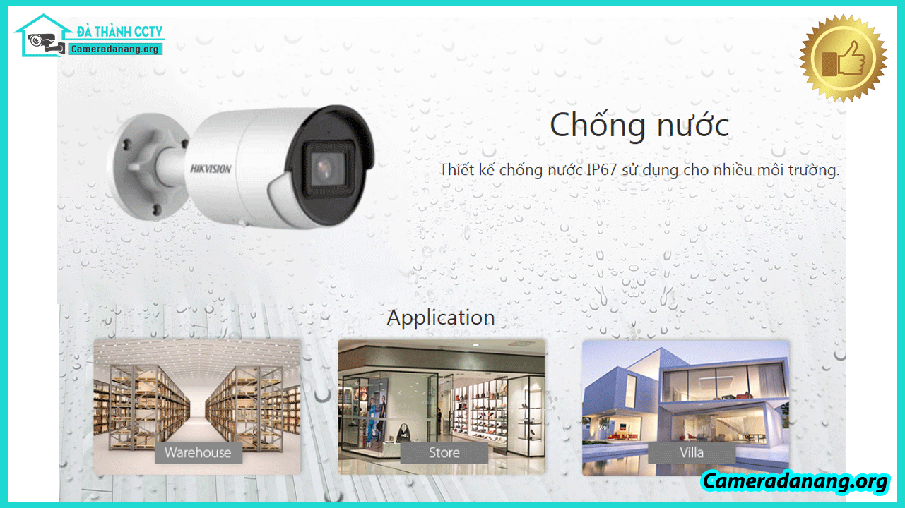 Với tiêu chuẩn IP67, camera được bảo vệ khỏi bụi và nước, cho phép hoạt động ổn định trong các môi trường khắc nghiệt.