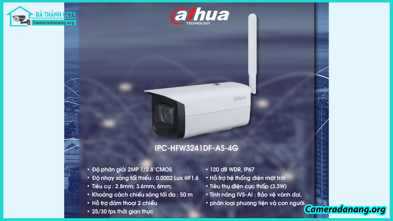 Nhu cầu sử dụng lắp đặt camera Đà Nẵng để giám sát an ninh của khách hàng tại Đà Nẵng, đáp ứng tốt yêu cầu an ninh của các gia đình và doanh nghiệp. Trong số đó, dòng sản phẩm Camera 4G năng lượng mặt trời Dahua DH-IPC-HFW3241DF-AS-4G nổi bật với hiệu suất vượt trội và nhiều tính năng ưu việt. Hãy cùng tìm hiểu về mẫu camera này qua bài viết dưới đây.