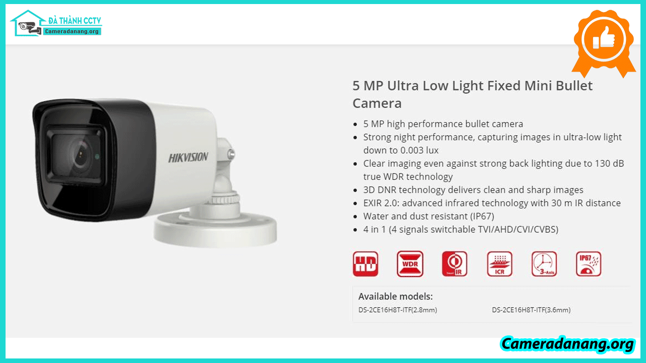 3. Camera HD-TVI 5MP Hikvision ngoài trời cố định DS-2CE16H8T-ITF có tốt không, nên mua không?