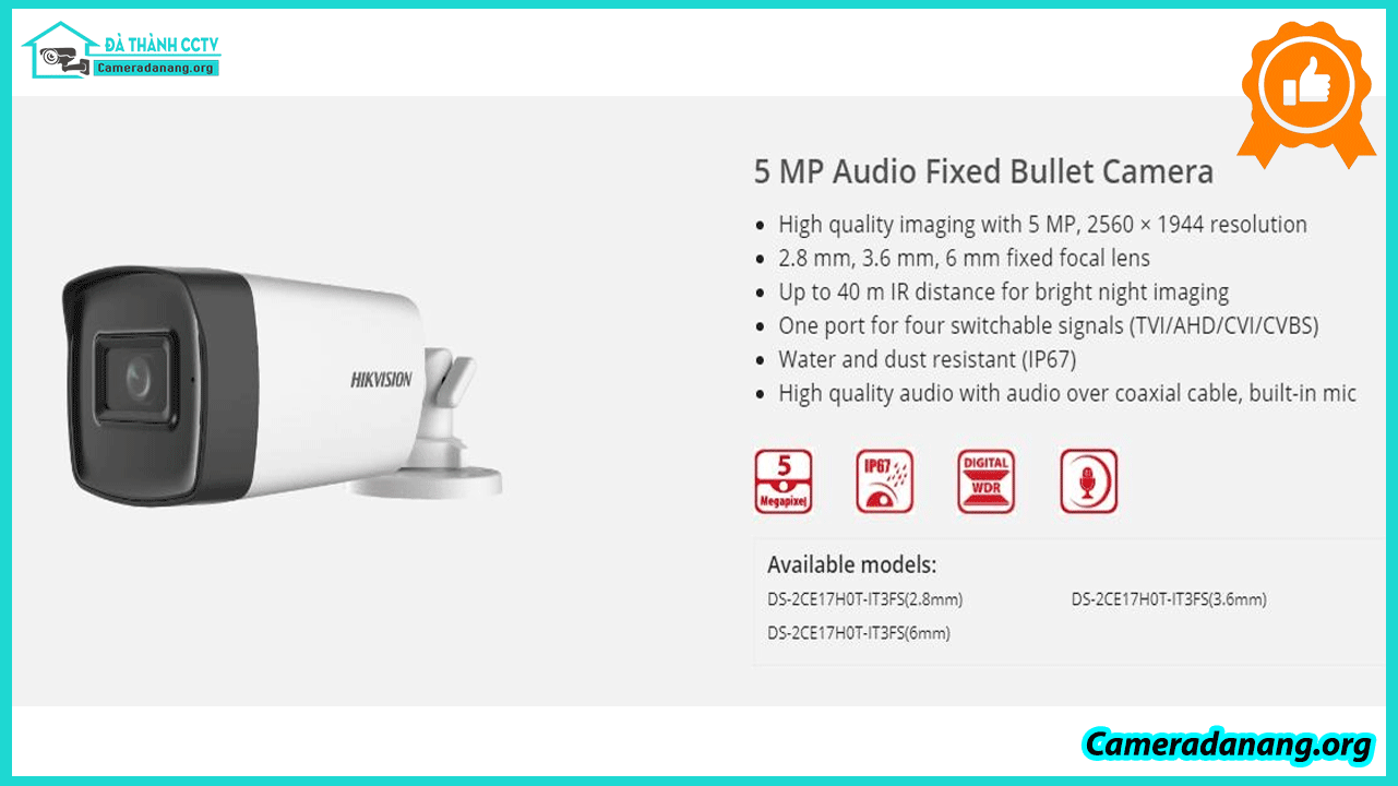 3. Camera HD-TVI 5MP Hikvision ngoài trời cố định DS-2CE17H0T-IT3FS có tốt không, nên mua không?