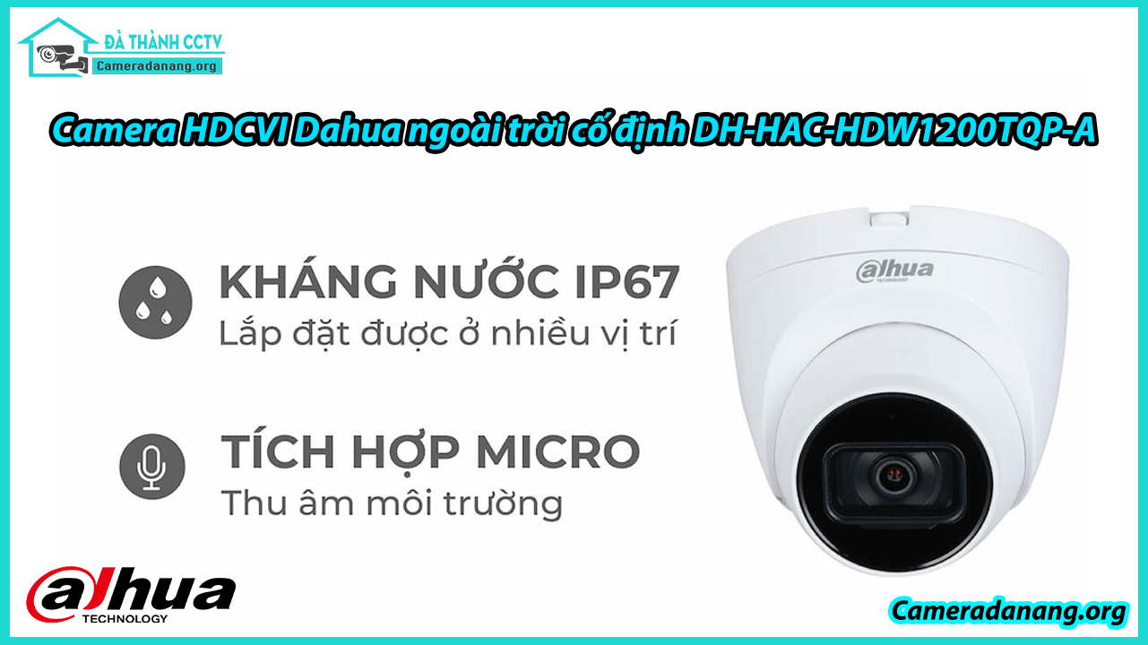 DH-HAC-HDW1200TQP-A là camera có độ phân giải 1080p chuẩn sắc nét hình ảnh và chất lượng. Thiết bị tích hợp mic ghi âm trên camera tầm nhìn xa đèn hồng ngoại lên đến 40m, chuẩn chống nước IP67 giúp bạn có thể chống chọi với mọi thời tiết.
