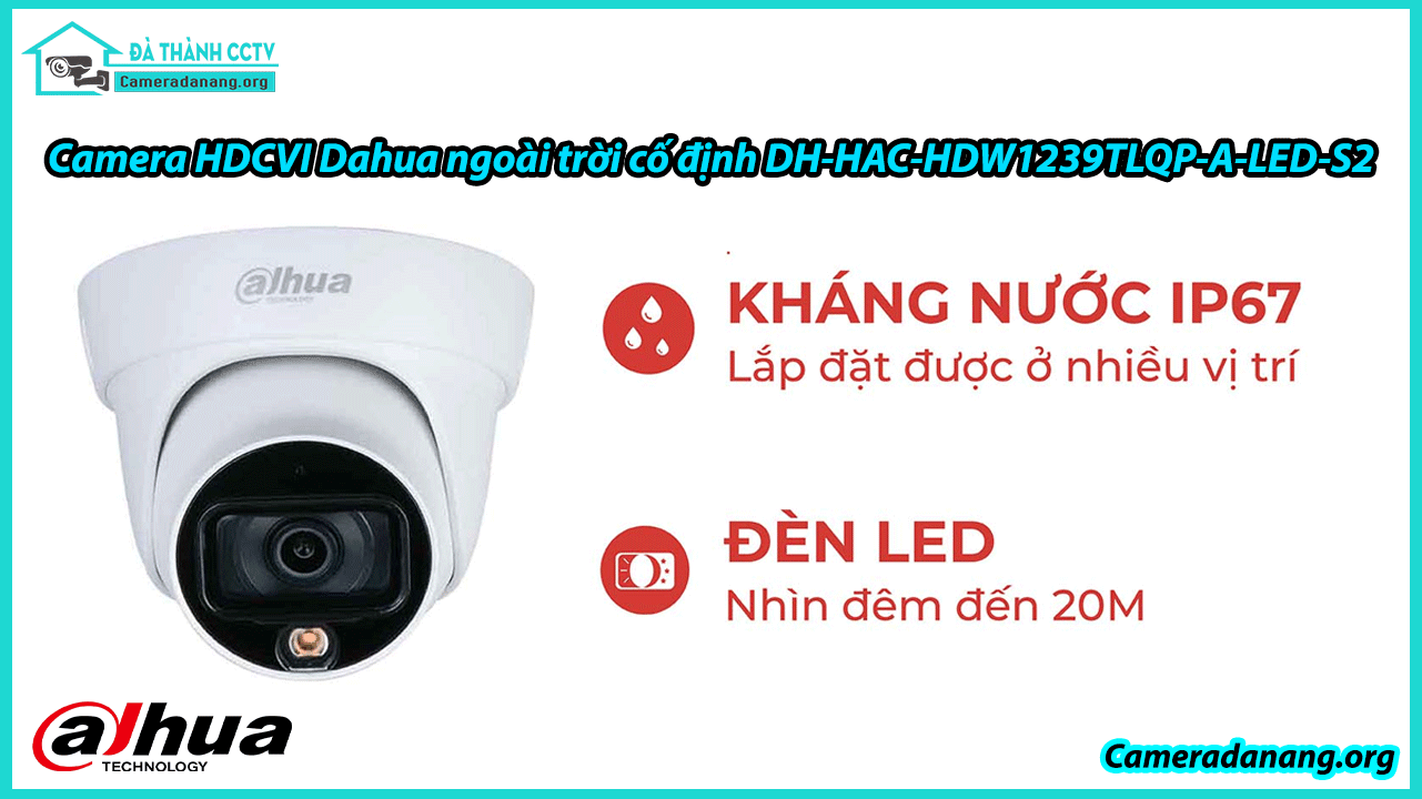 Camera HDCVI Dahua DH-HAC-HDW1239TLQP-A-LED-S2 Ngoài Trời Cố Định