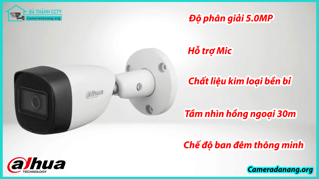 Camera DH HAC HFW1500CMP S2 chống nước, bụi, chịu thời tiết khắc nghiệt, phù hợp lắp ngoài trời. Độ phân giải 5MP, 25fps cho hình ảnh mượt mà. Độ nhạy sáng 0.02Lux/F1.85 và hồng ngoại thông minh giúp quan sát tốt trong ánh sáng yếu, tầm nhìn đêm 30m.