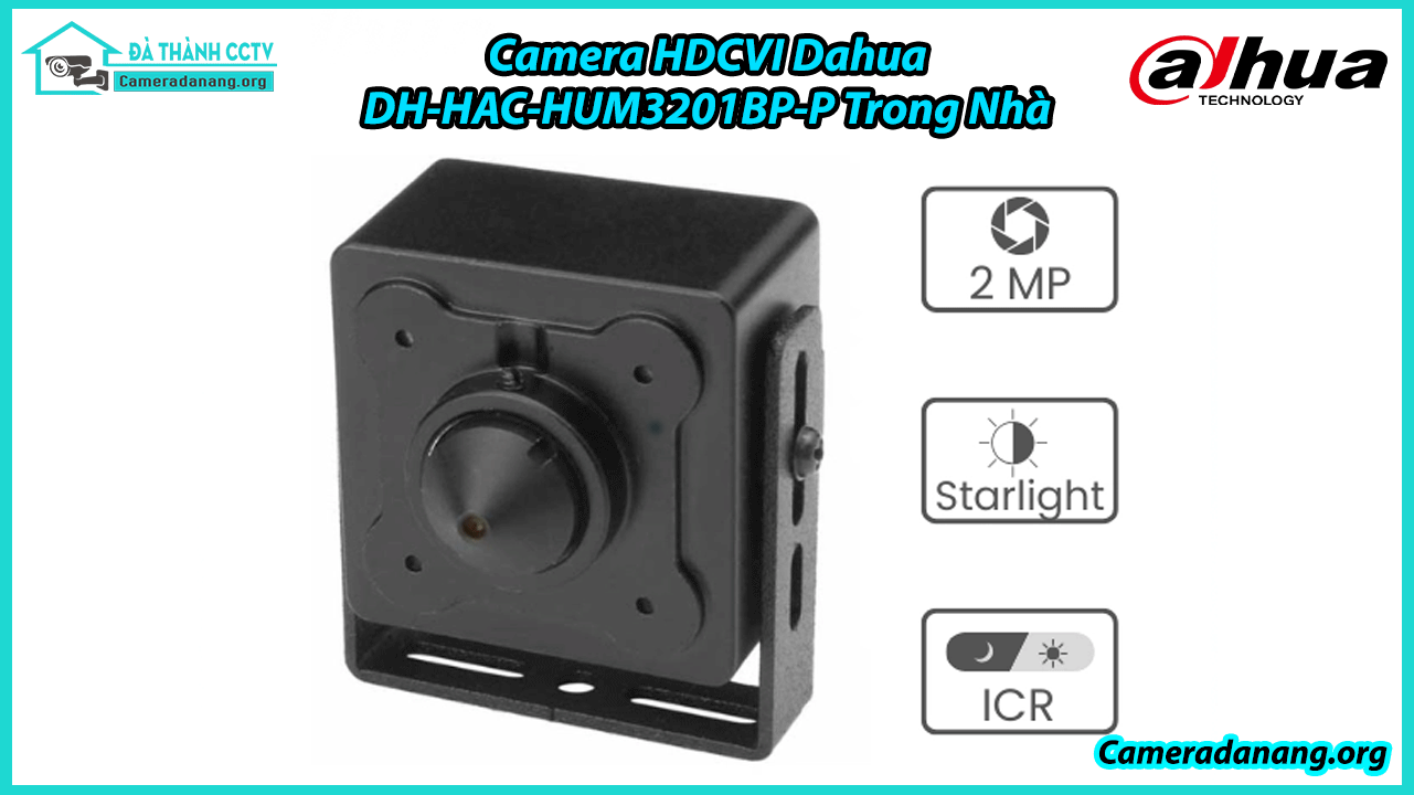 DH-HAC-HUM3201BP-P: Camera 2MP, cảm biến CMOS, độ nhạy sáng 0.004Lux/F2.4, hỗ trợ công nghệ Starlight, chế độ ngày đêm, WDR 120dB, chống nhiễu 3D-DNR, ống kính 2.8mm, góc nhìn rộng.