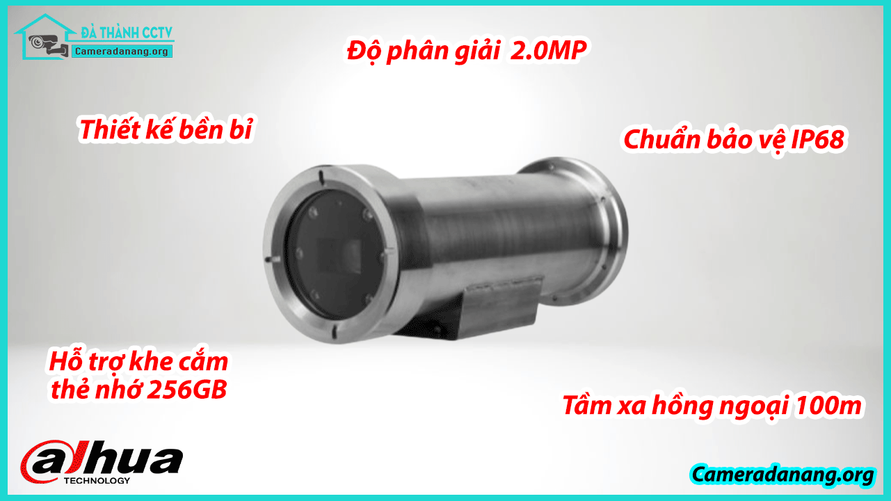 Camera DH-EPC230U: Được làm từ thép không gỉ 316L, đạt chuẩn ATEX chống cháy nổ và IP68 chống nước, bụi. Với công nghệ Starlight, độ nhạy sáng 0.005Lux và chuẩn nén H.265+, camera cung cấp hình ảnh rõ nét ngay cả trong điều kiện ánh sáng yếu. Tầm quan sát hồng ngoại lên đến 100m, ống kính zoom quang học 30X. Tích hợp mic, báo động, hỗ trợ thẻ nhớ micro-SD và ghi hình tự động khi mất kết nối.