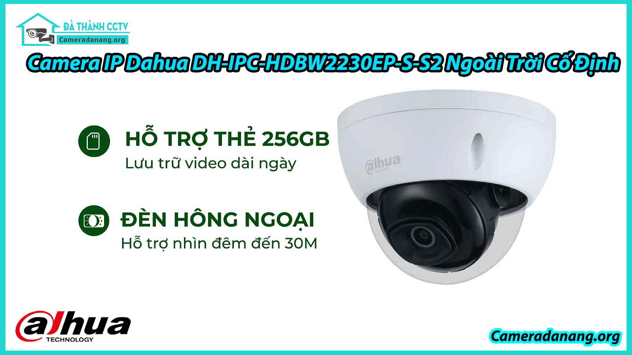Nhu cầu sử dụng camera để giám sát an ninh của khách hàng tại Đà Nẵng hiện nay ngày càng được nâng cao. Vì vậy sự ra đời của hàng loại thương hiệu cũng ra đời. Thương hiệu camera Dahua cũng là một trong những thương hiệu lớn tự hào thiết kế nên nhiều dòng camera phục vụ tốt nhu cầu sử dụng của khách hàng. Phải kể đến sự ra đời của Camera IP Dahua ngoài trời cố định DH-IPC-HDBW2230EP-S-S2 là một trong những dòng được ưa chuộng nhất hiện nay. Hãy cùng chúng tôi tìm hiểu về dòng sản phẩm này nhé!