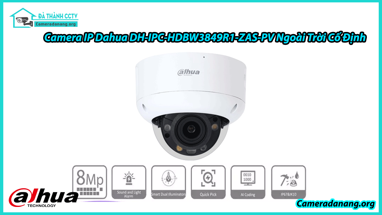 1. Camera IP Dahua ngoài trời cố định DH-IPC-HDBW3849R1-ZAS-PV là sản phẩm của thương hiệu nào?