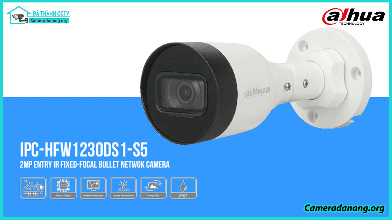 - Dahua DH-IPC-HFW1230DS1-S5 là dòng camera 2MP Entry IR Fixed-focal Bullet Netwok.