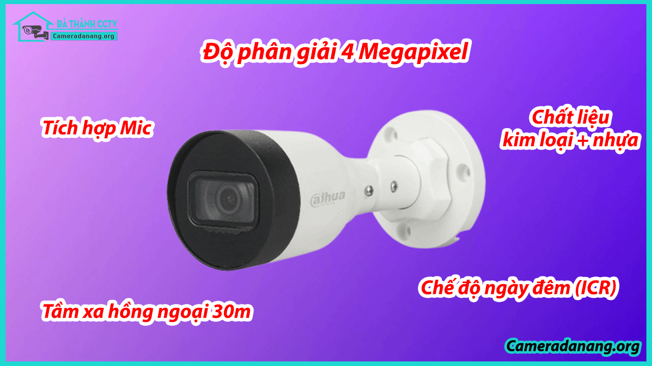 - Độ phân giải 4 Megapixel cảm biến CMOS kích thước 1/2.7”.