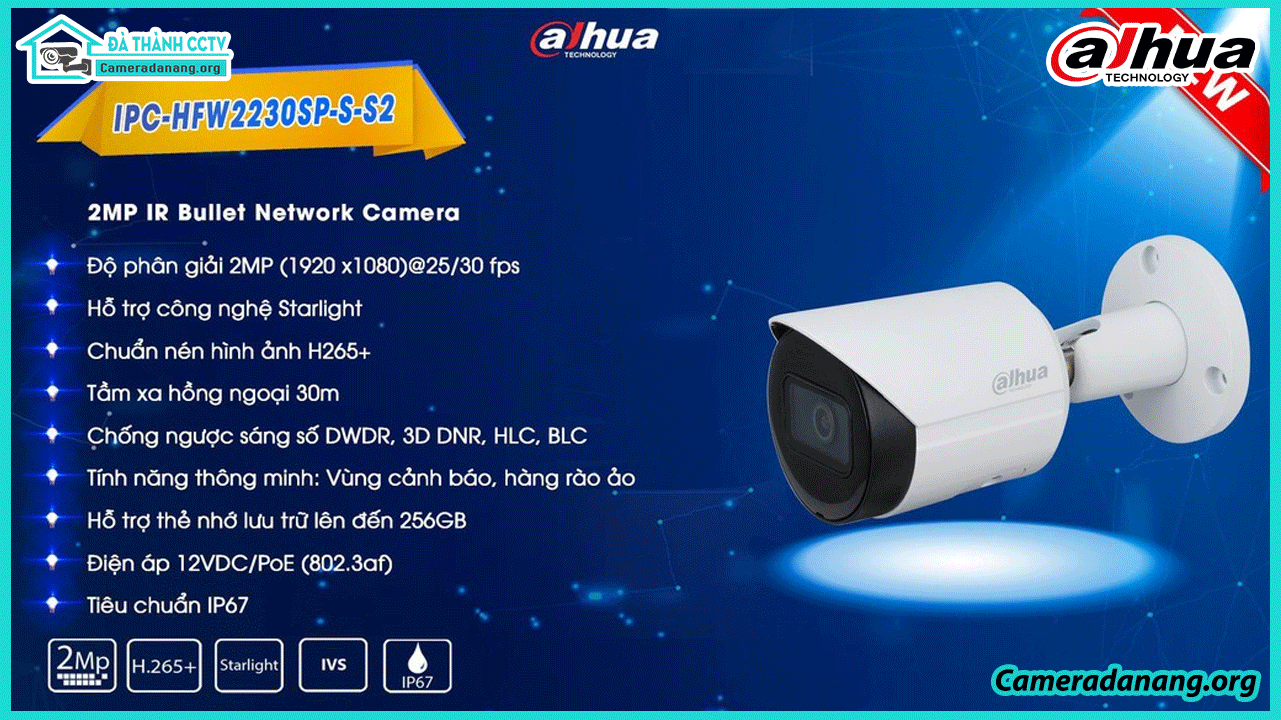 Nhu cầu sử dụng camera để giám sát an ninh của khách hàng tại Đà Nẵng hiện nay ngày càng được nâng cao. Vì vậy sự ra đời của hàng loại thương hiệu cũng ra đời. Thương hiệu camera Dahua cũng là một trong những thương hiệu lớn tự hào thiết kế nên nhiều dòng camera phục vụ tốt nhu cầu sử dụng của khách hàng. Phải kể đến sự ra đời của Camera IP Dahua ngoài trời cố định DH-IPC-HFW2230SP-S-S2 là một trong những dòng được ưa chuộng nhất hiện nay. Hãy cùng chúng tôi tìm hiểu về dòng sản phẩm này nhé!