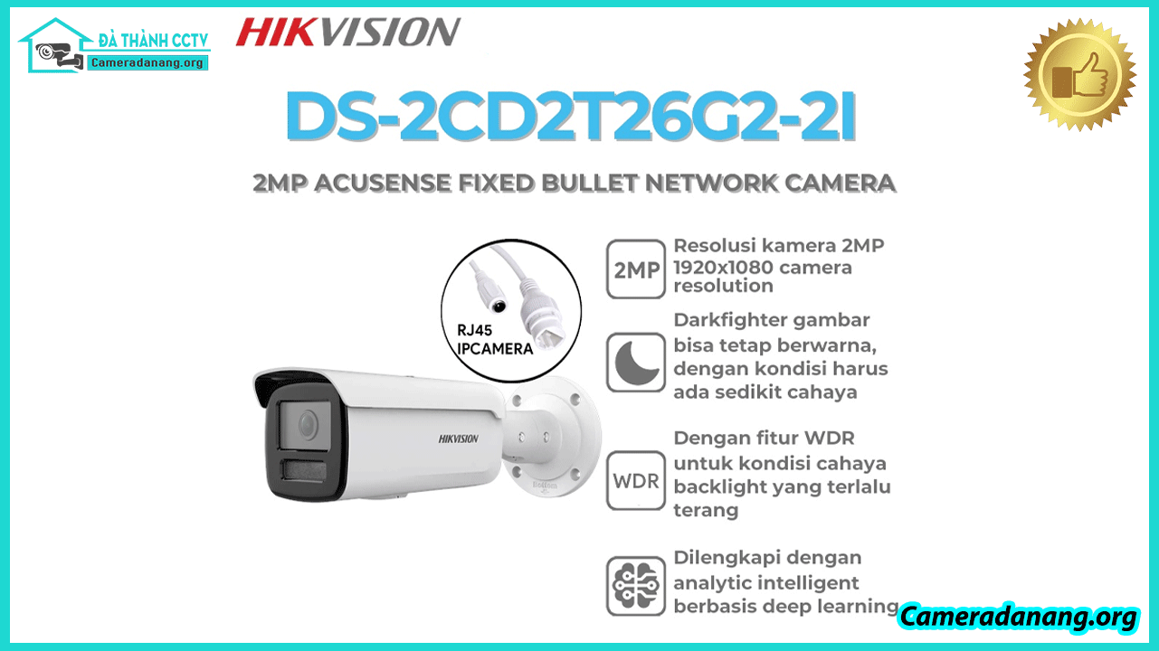 Nhu cầu sử dụng Lắp đặt camera Đà Nẵng để giám sát an ninh của khách hàng tại Đà Nẵng hiện nay ngày càng được nâng cao. Vì vậy sự ra đời của hàng loại thương hiệu cũng ra đời. Thương hiệu camera Hikvision cũng là một trong những thương hiệu lớn tự hào thiết kế nên nhiều dòng camera phục vụ tốt nhu cầu sử dụng của khách hàng. Hôm nay cùng ĐÀ THÀNH CCTV tìm hiểu về một mẫu Camera IP Hikvision ngoài trời cố định DS-2CD2T26G2-2I đang được khách hàng cực kỳ ưa chuộng hiện nay.