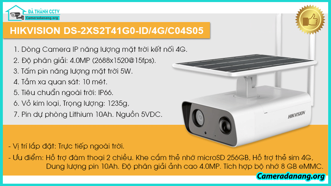 Nhu cầu sử dụng Lắp đặt camera Đà Nẵng để giám sát an ninh của khách hàng tại Đà Nẵng hiện nay ngày càng được nâng cao. Vì vậy sự ra đời của hàng loại thương hiệu cũng ra đời. Thương hiệu camera Hikvision cũng là một trong những thương hiệu lớn tự hào thiết kế nên nhiều dòng camera phục vụ tốt nhu cầu sử dụng của khách hàng. Hôm nay cùng ĐÀ THÀNH CCTV tìm hiểu về một mẫu Camera IP Hikvision ngoài trời cố định DS-2XS2T41G0-ID/4G/C04S05 đang được khách hàng cực kỳ ưa chuộng hiện nay.