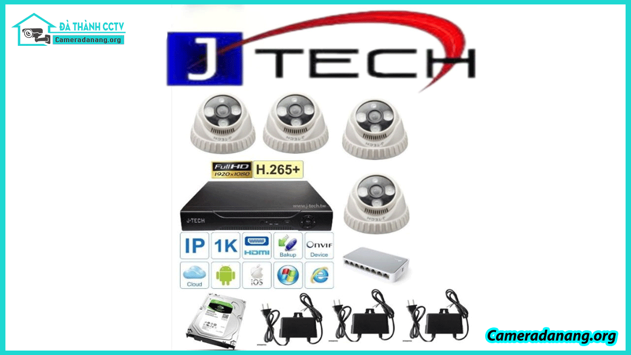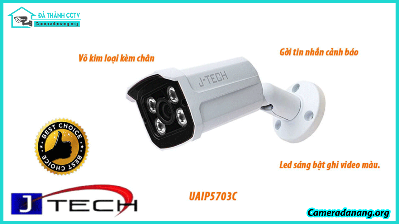 Camera IP J-Tech ngoài trời UAIP5703C (3MP/Human Detect/Face ID/PoE/ Smart Led) led sáng bật ghi màu, gửi cảnh báo về điện thoại, dùng nguồn điện chung dây mạng, vỏ kim loại.