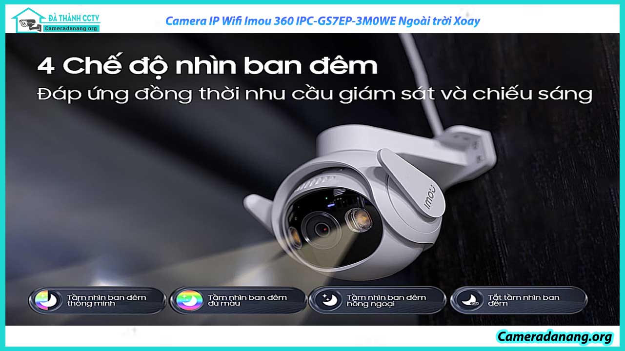 - Chế độ ban đêm thông minh với 4 chế độ sáng: Tự động, Full Color, Hồng ngoại và tắt