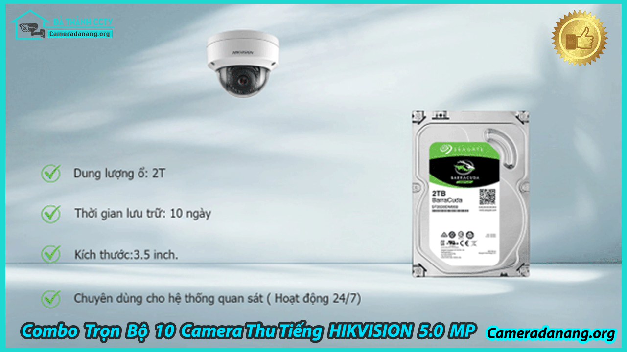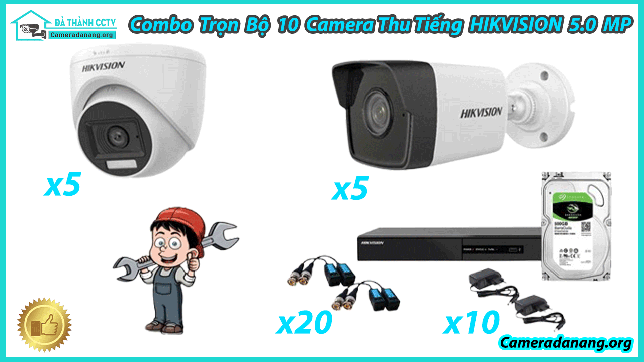 2. Combo Trọn Bộ 10 Camera Hikvision 5.0MP – Thu Tiếng Hãng Hikvision