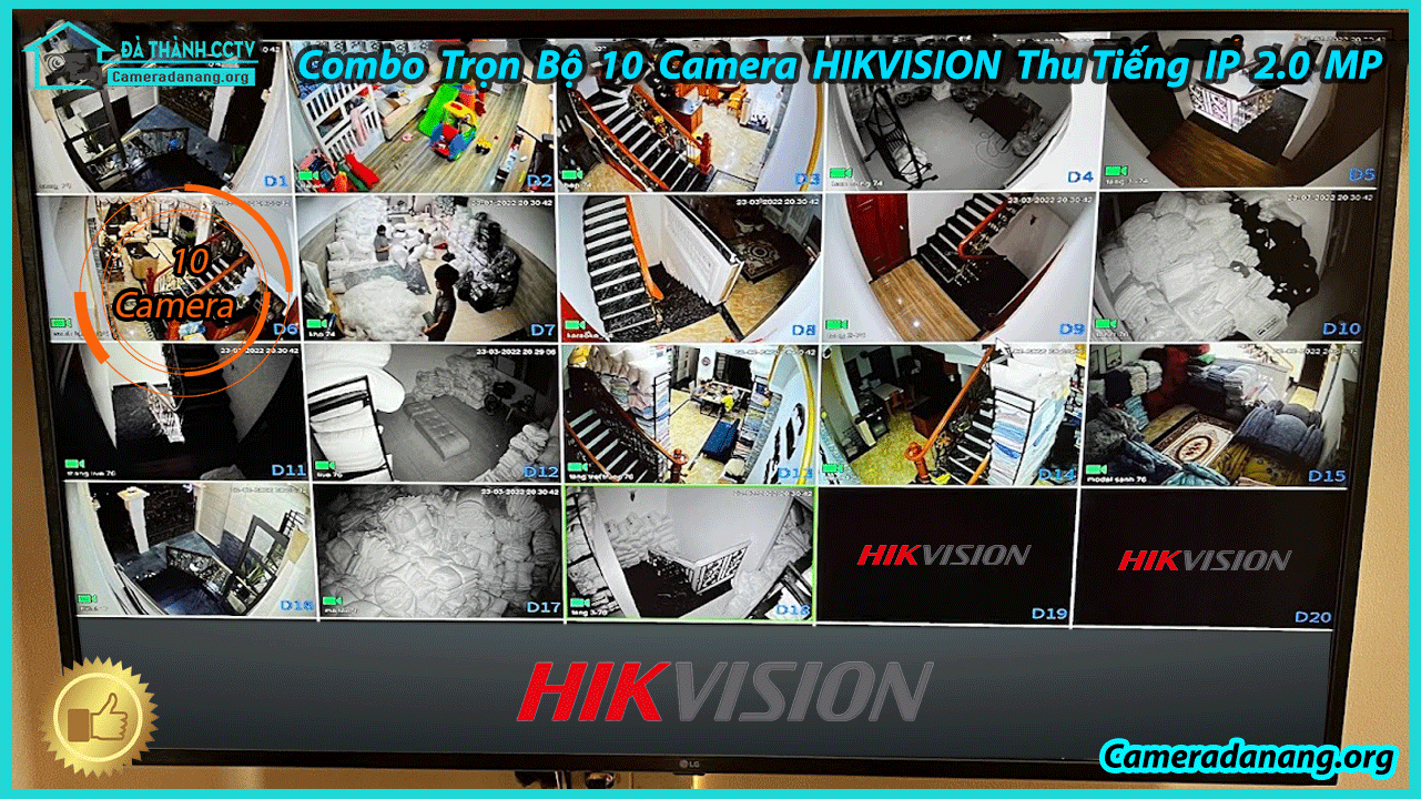 Combo Trọn Bộ 10 Camera Hikvision IP 2.0MP – Thu Tiếng là lựa chọn hoàn hảo cho việc giám sát an ninh, vừa đảm bảo chất lượng hình ảnh, vừa tiện lợi với tính năng thu âm. Thích hợp cho cả gia đình và doanh nghiệp, giúp bạn yên tâm hơn trong việc bảo vệ tài sản.