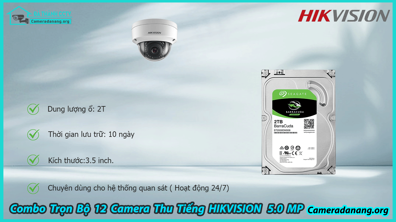 Combo Trọn Bộ 12 Camera Hikvision 5.0MP – Thu Tiếng Hãng Hikvision