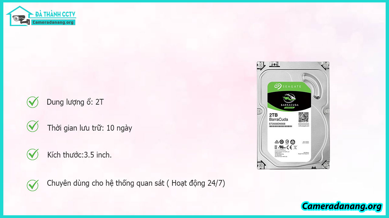 - Ổ cứng lưu trữ chuyên dụng camera: 2T