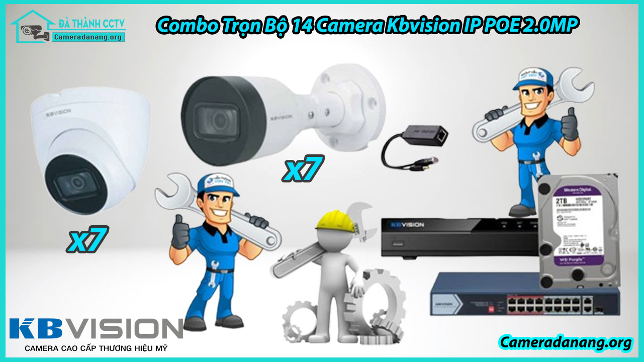 Combo Trọn Bộ 14 Camera Kbvision IP POE 2.0MP gồm