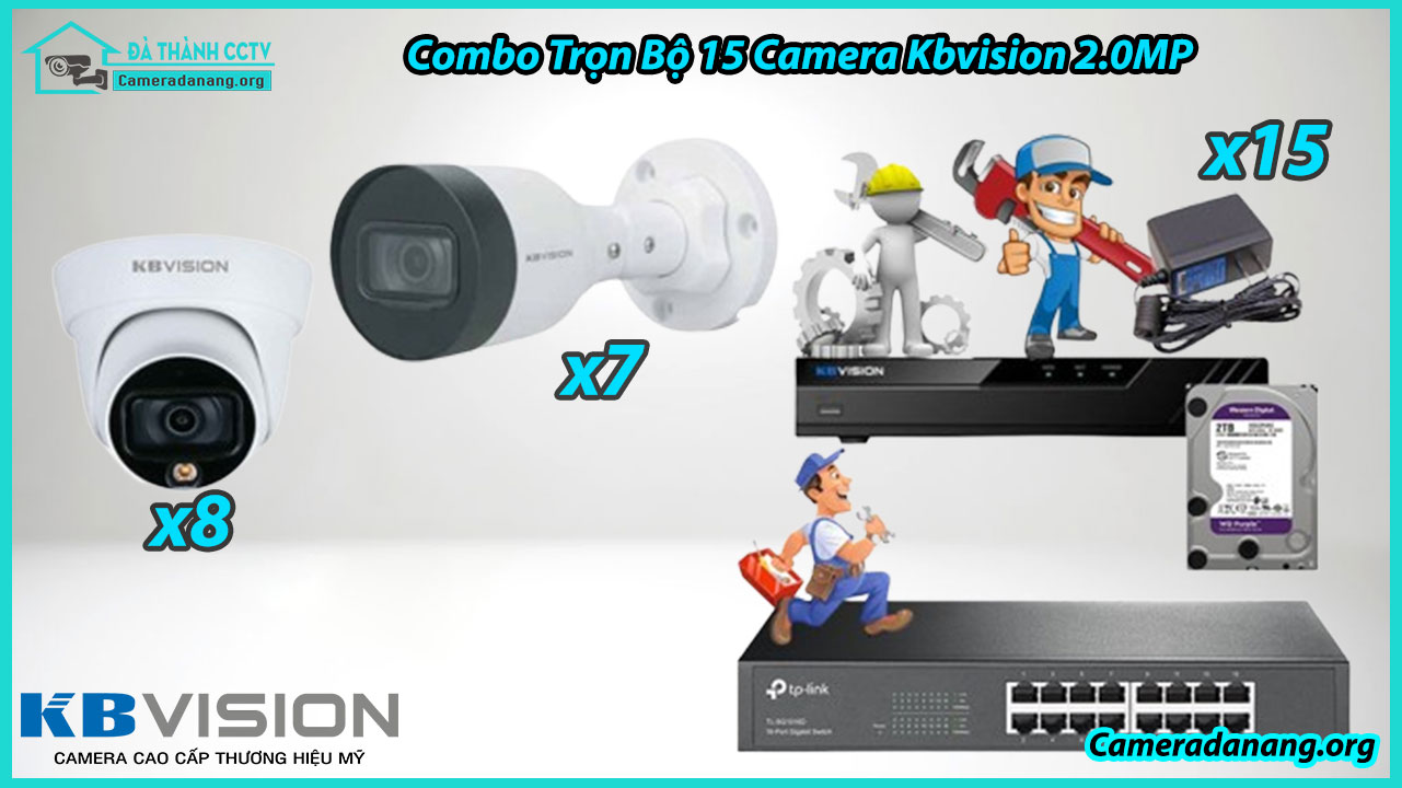 Combo Trọn Bộ 15 Camera KBvision IP 2.0MP bao gồm: