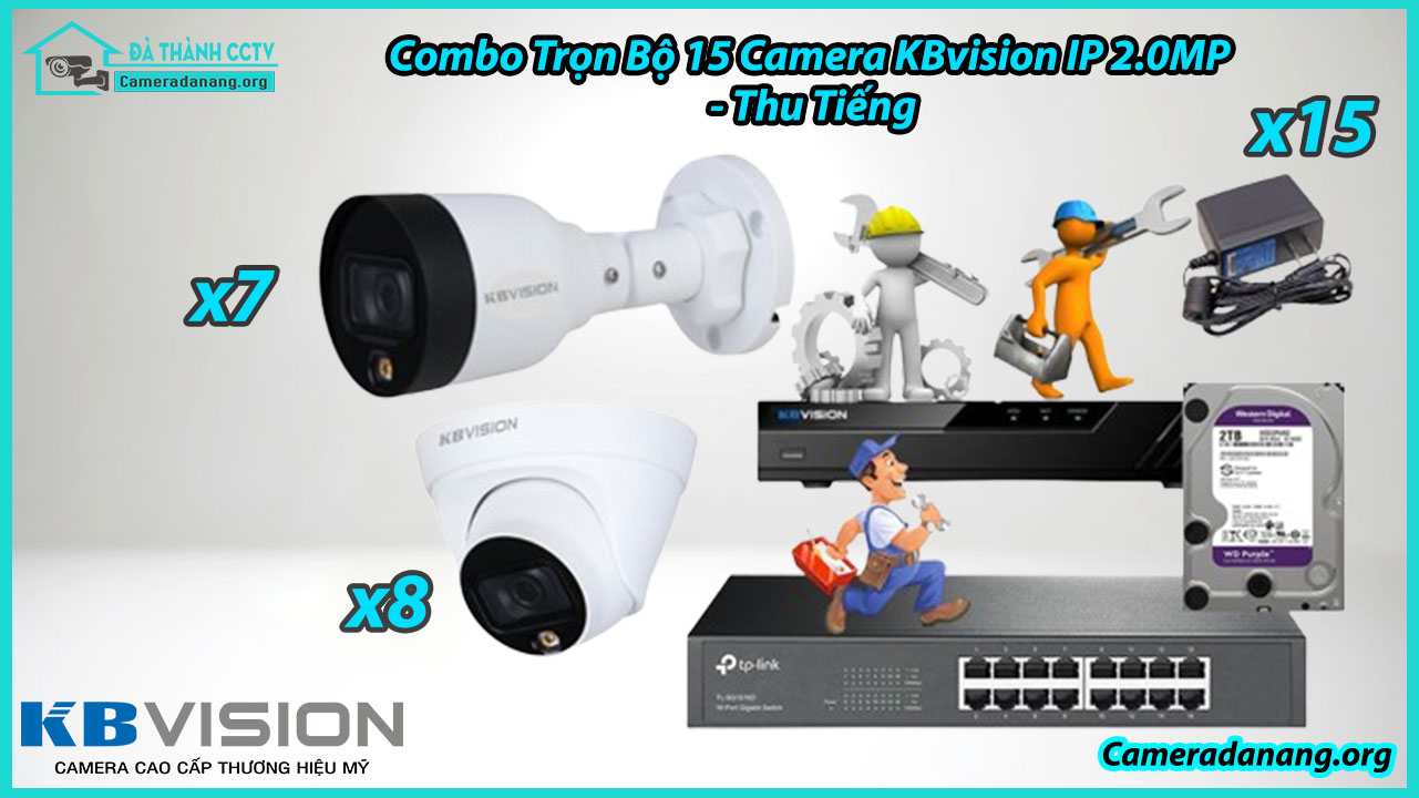 Combo Trọn Bộ 15 Camera KBvision IP 2.0MP – Thu Tiếng bao gồm: