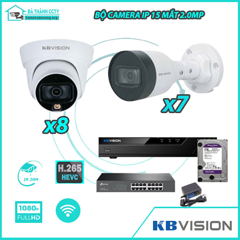 Combo Trọn Bộ 15 Camera KBvision IP 2.0MP bao gồm:
