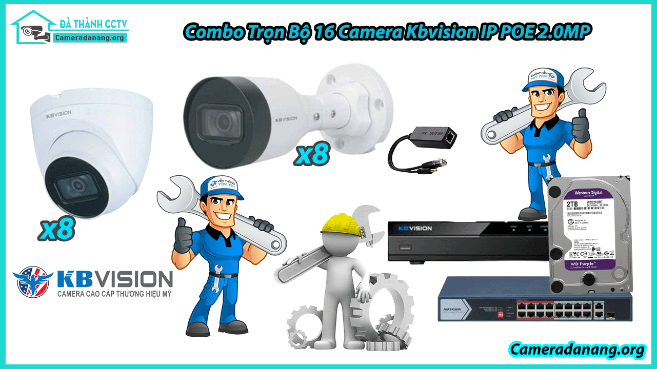 Combo Trọn Bộ 16 Camera Kbvision IP POE 2.0MP gồm
