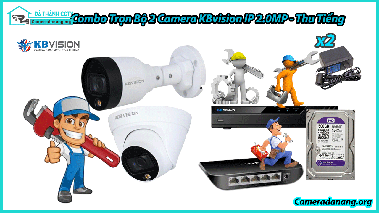 Combo Trọn Bộ 2 Camera KBvision IP 2.0MP – Thu Tiếng gồm: