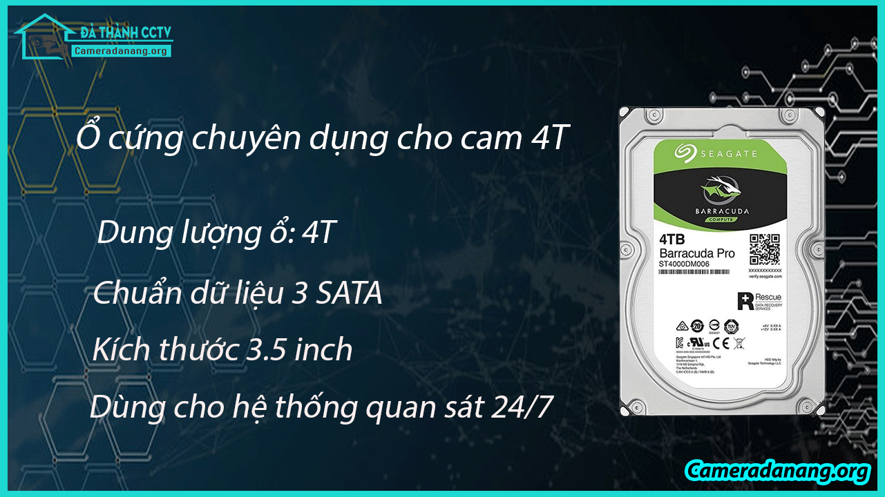 - Ổ cứng lưu trữ chuyên dụng camera: 4T Số lượng 01