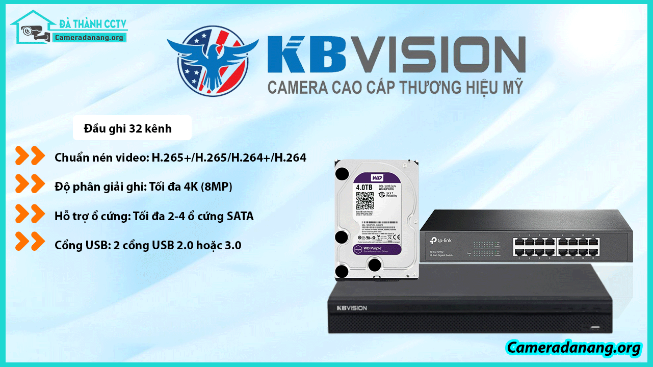 Combo Trọn Bộ 24 Camera KBvision IP 2.0MP bao gồm