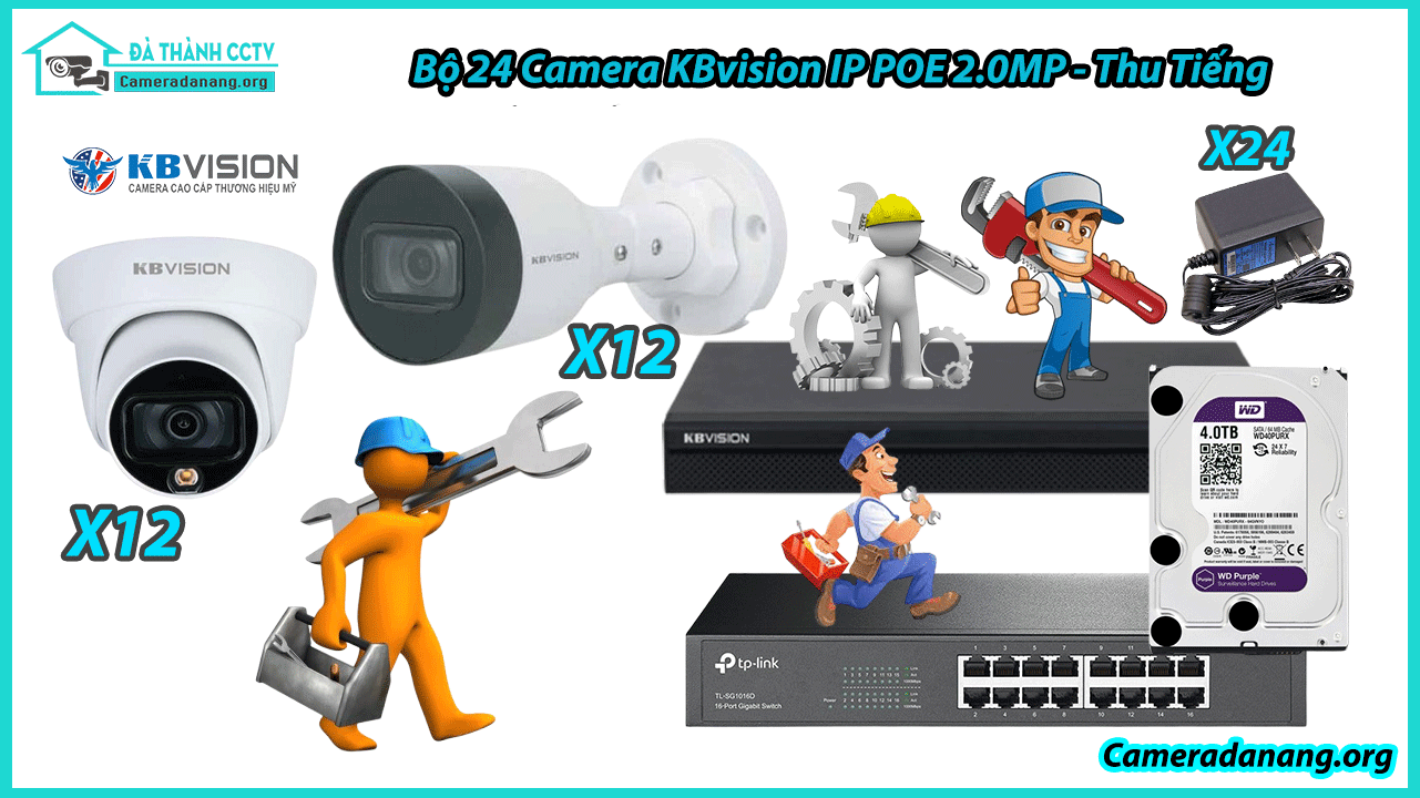 Combo Trọn Bộ 24 Camera KBvision IP POE 2.0MP – Thu Tiếng có những gì