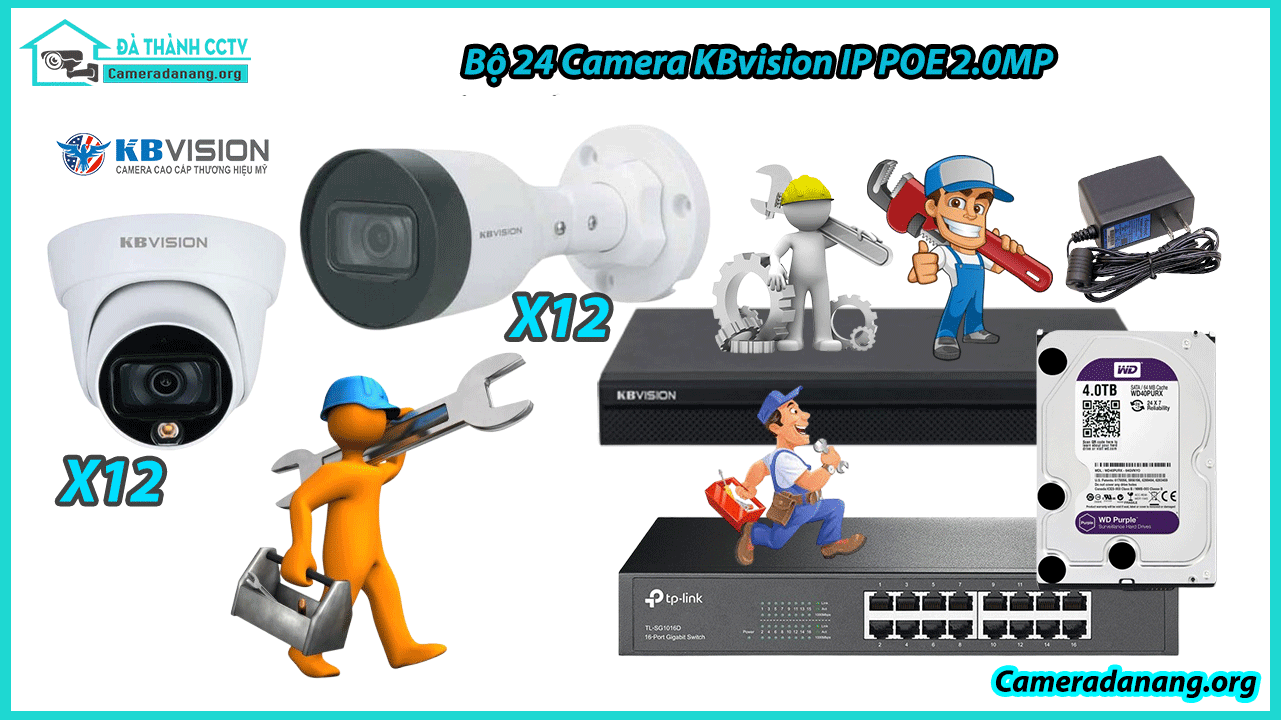 Combo Trọn Bộ 24 Camera Kbvision IP POE 2.0MP gồm