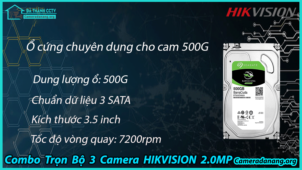 - Ổ cứng lưu trữ chuyên dụng camera: 500G Số lượng 01