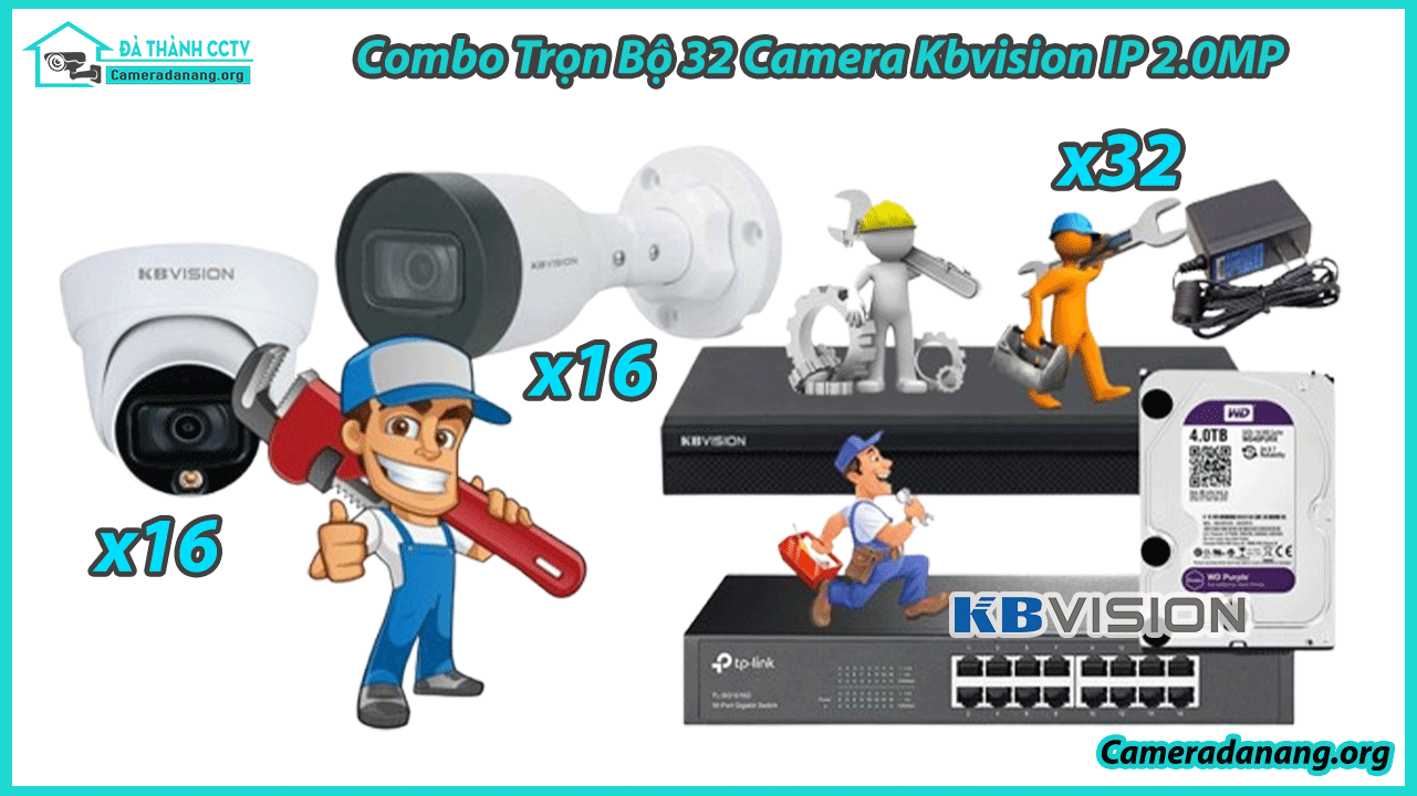 Combo Trọn Bộ 32 Camera KBvision IP 2.0MP bao gồm