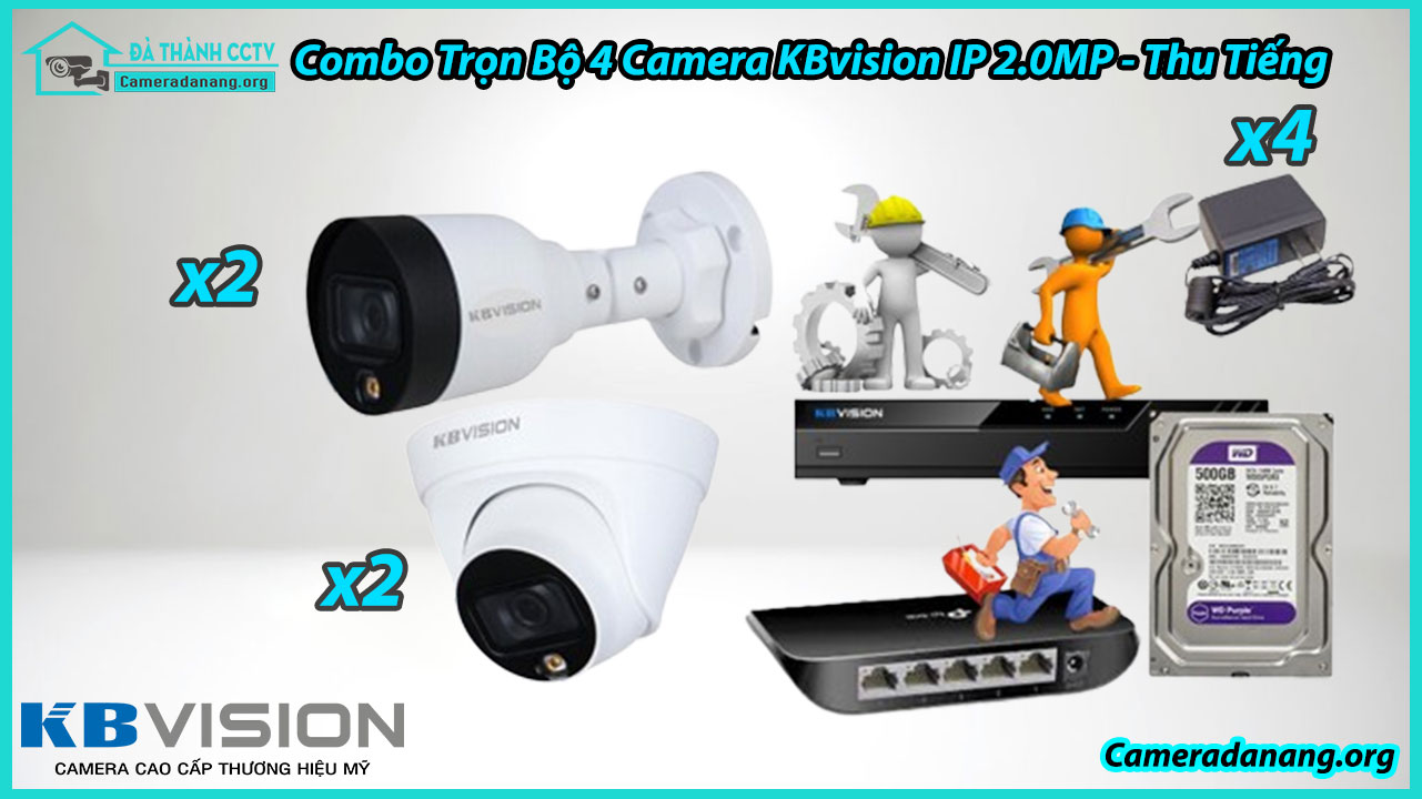 Combo Trọn Bộ 4 Camera KBvision IP 2.0MP – Thu Tiếng gồm: