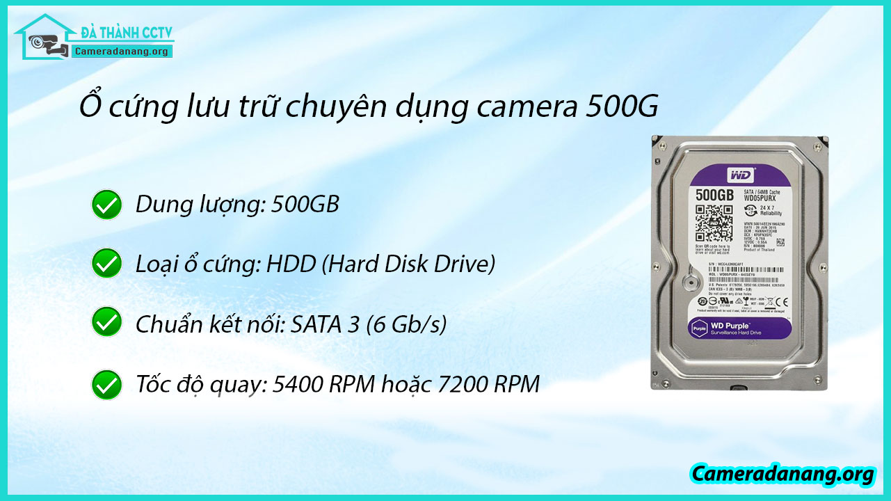 - Ổ cứng lưu trữ chuyên dụng camera: 500G Số lượng 01