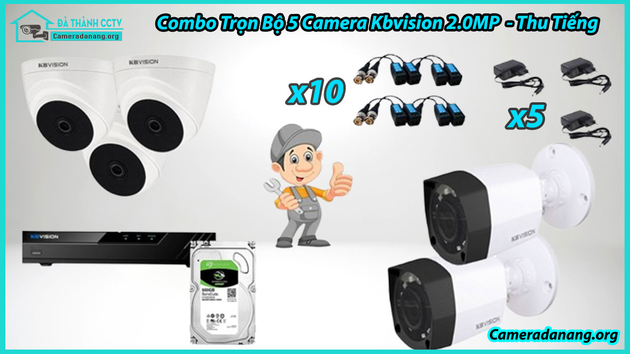 Combo Trọn Bộ 5 Camera Kbvision 2.0MP – Thu Tiếng