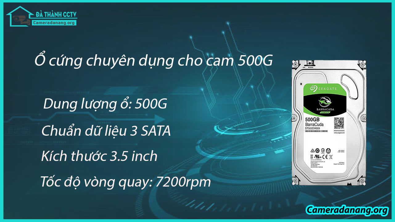 - Ổ cứng lưu trữ chuyên dụng camera: 500G Số lượng 01