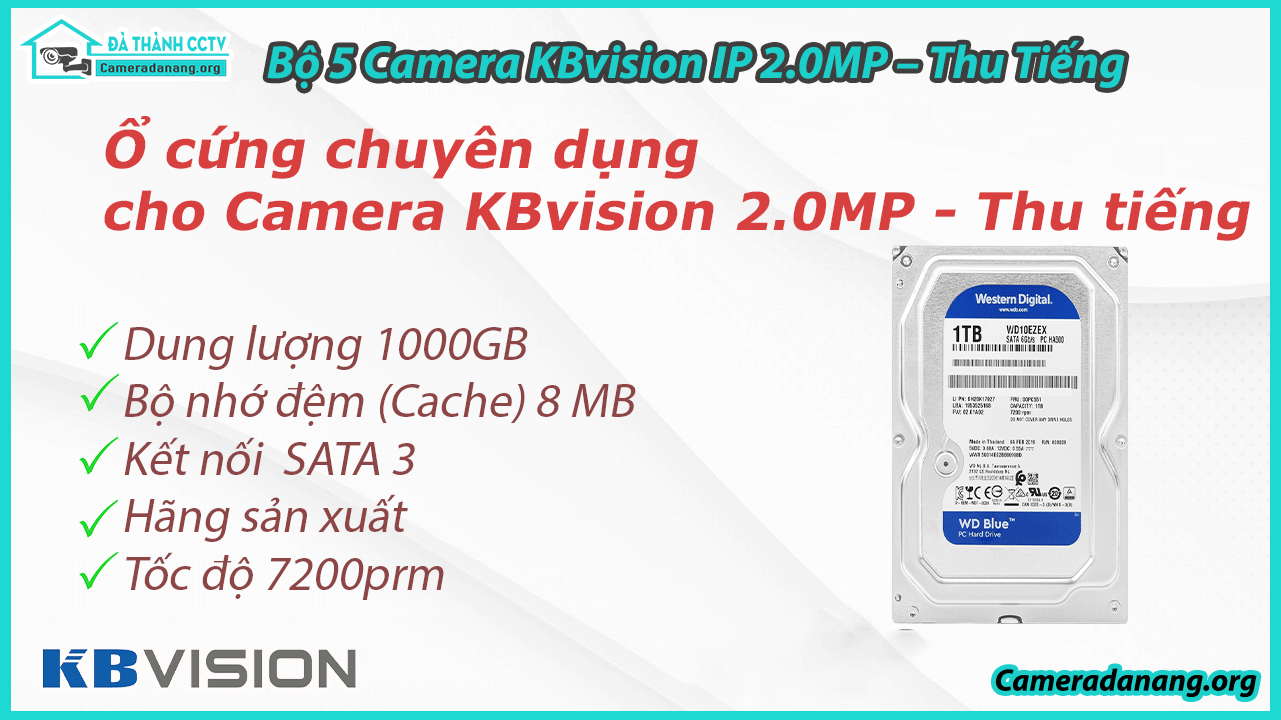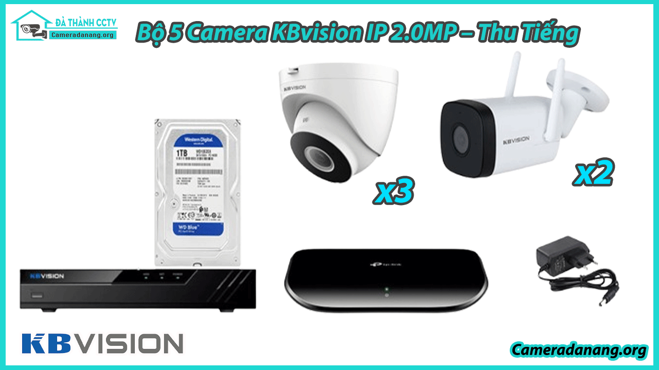 Combo Trọn Bộ 5 Camera KBvision IP 2.0MP – Thu Tiếng