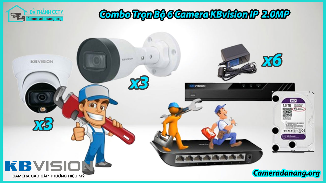 Combo Trọn Bộ 6 Camera KBvision IP 2.0MP gồm những: