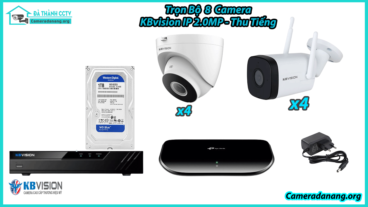 Combo Trọn Bộ 8 Camera KBvision IP 2.0MP gồm những gì?