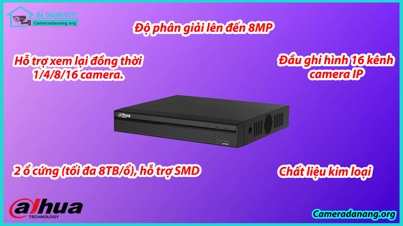 - Đầu ghi hình 16 kênh IP hỗ trợ camera đến 8MP.
